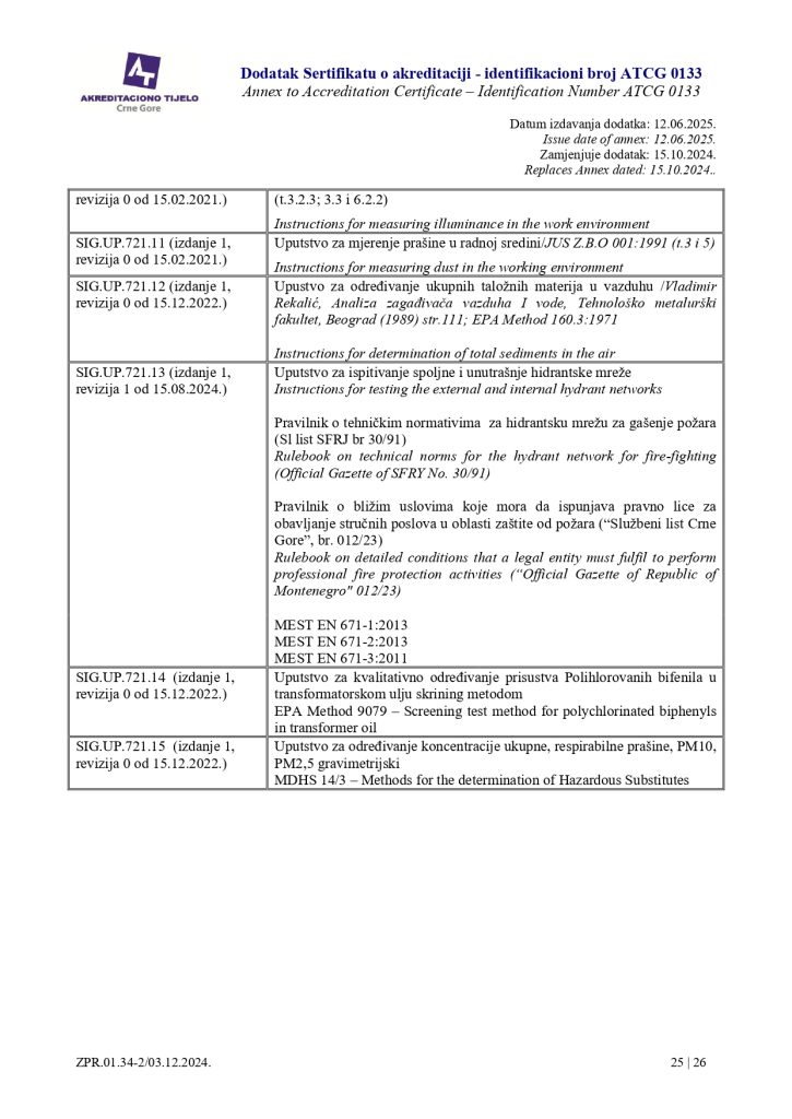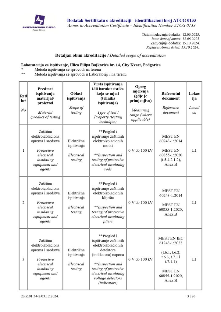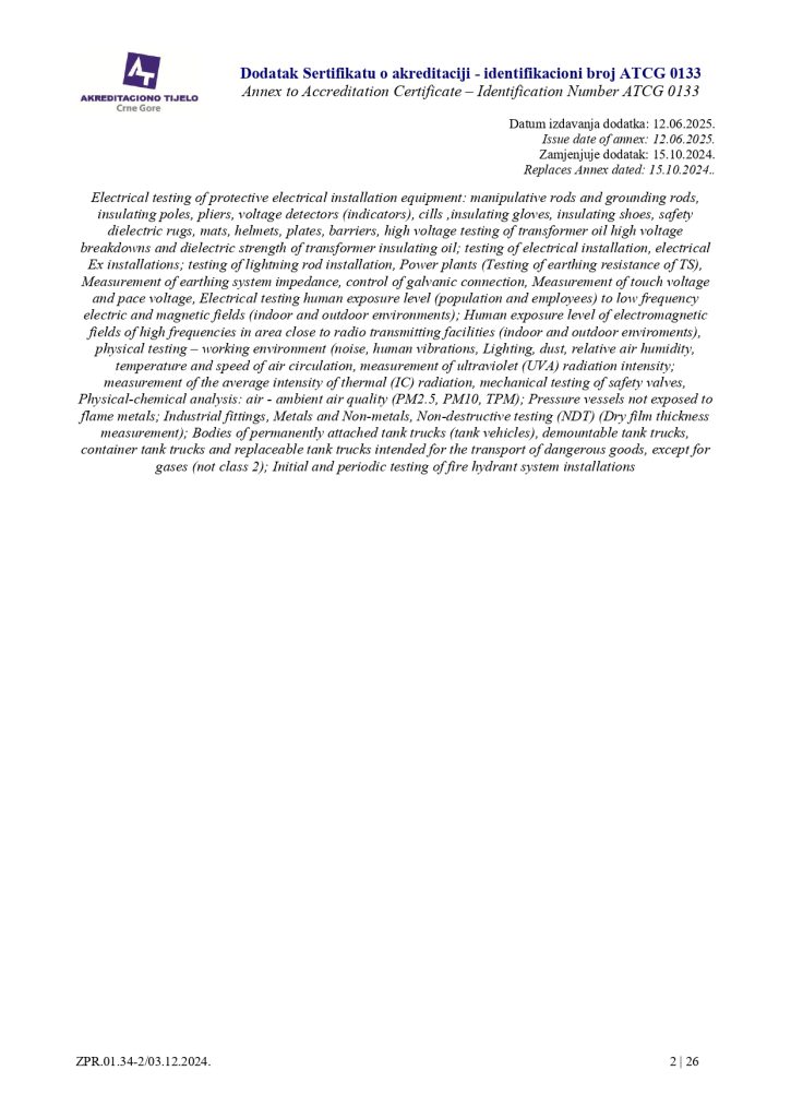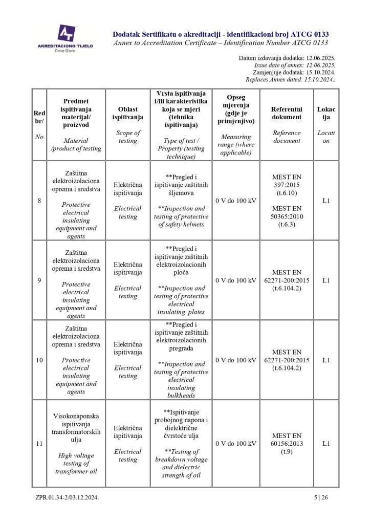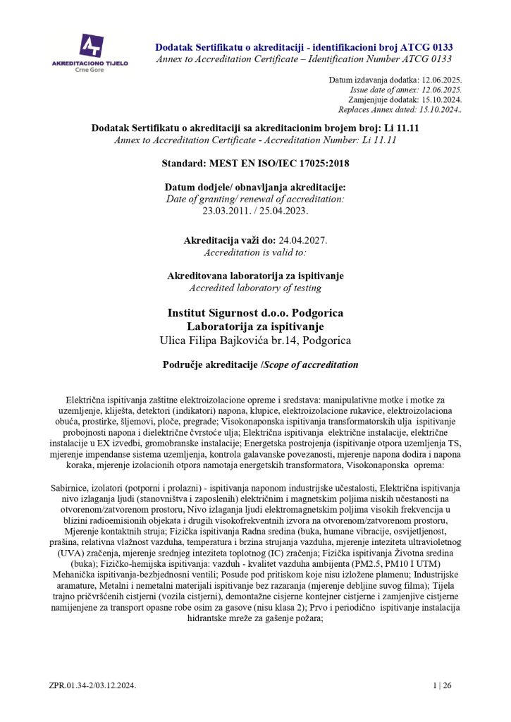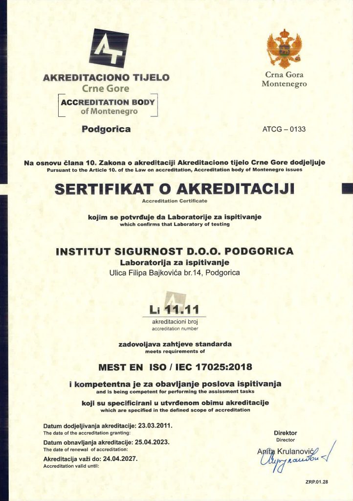Испытательная лаборатория является специальным подразделением института, оснащенным новейшим оборудованием и аккредитованным в соответствии с международным стандартом MEST EN ISO / IEC 17025: 2018