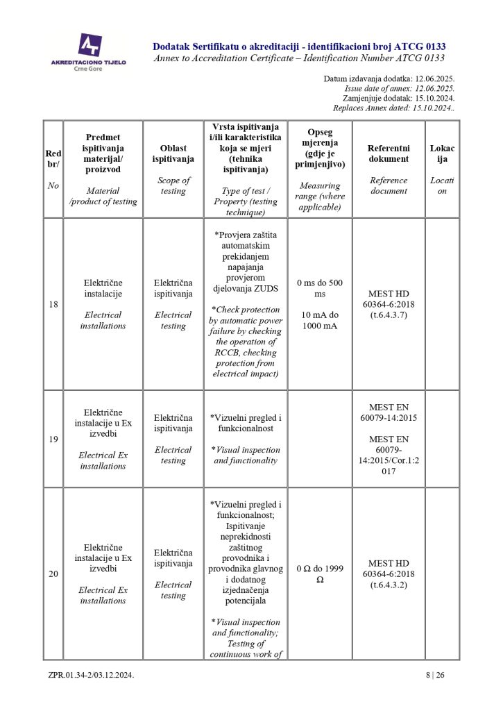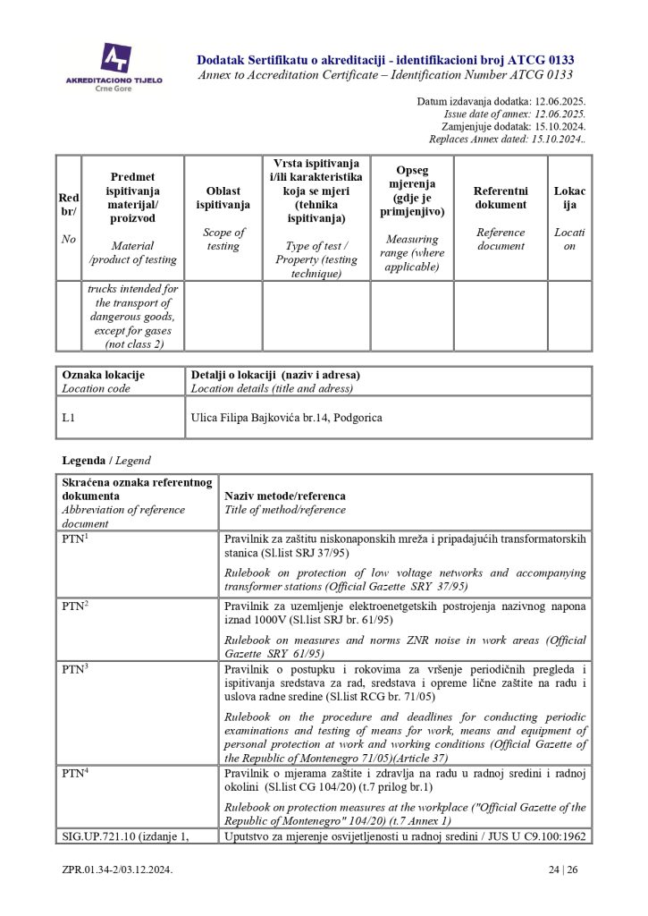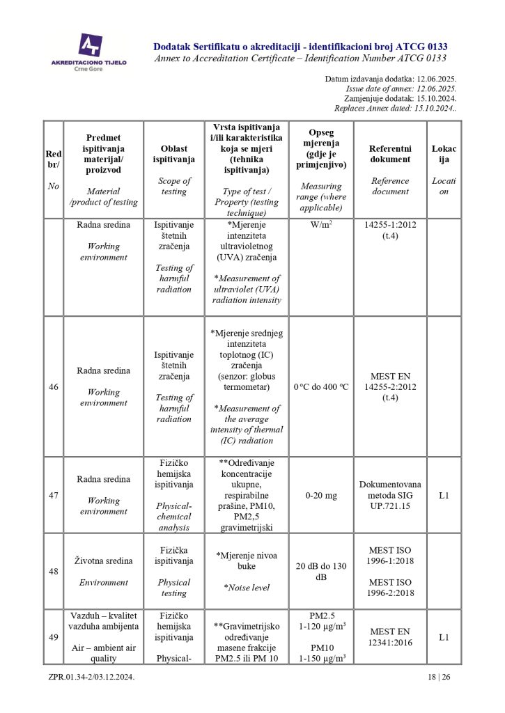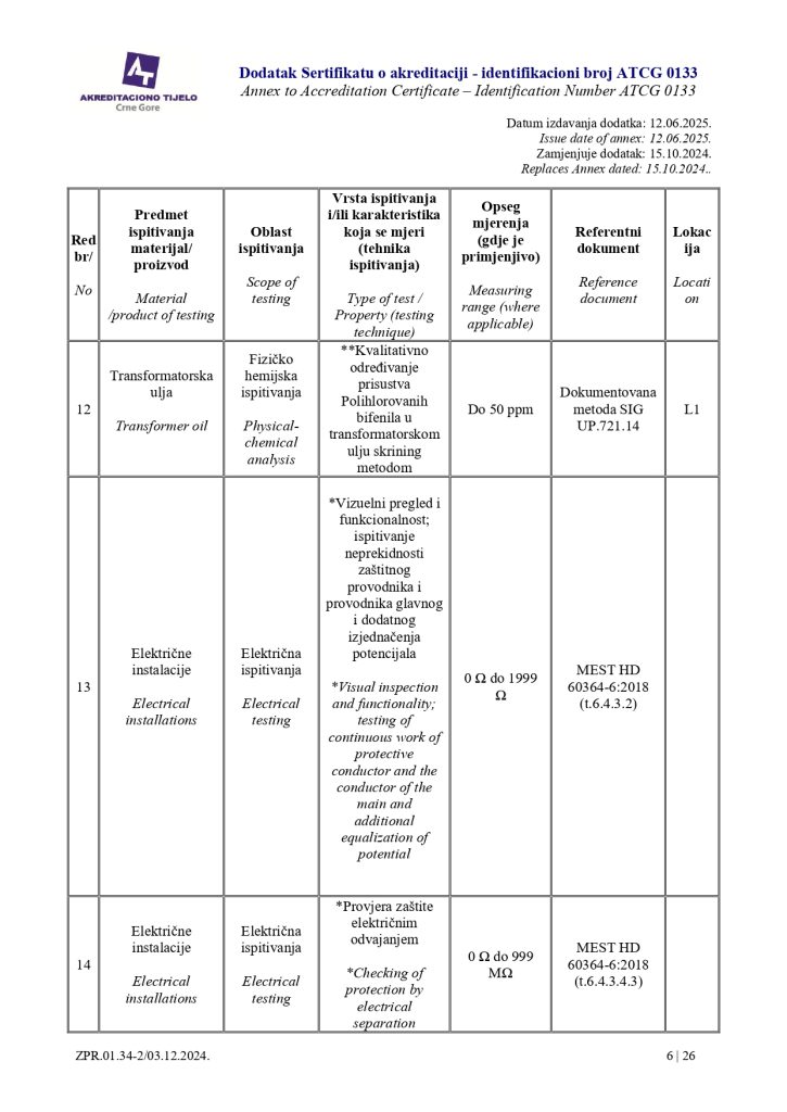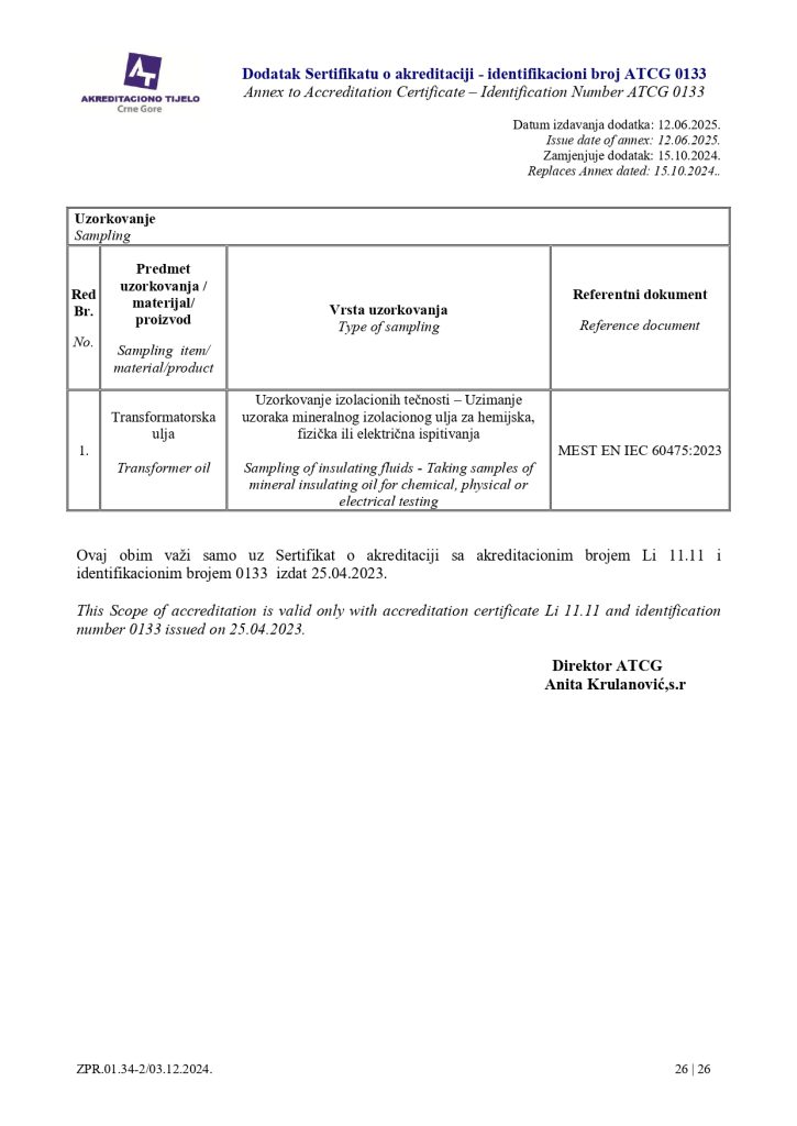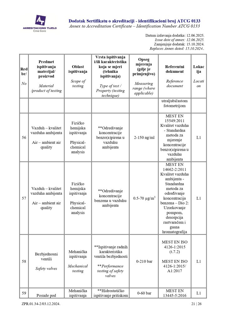 Испытательная лаборатория является специальным подразделением института, оснащенным новейшим оборудованием и аккредитованным в соответствии с международным стандартом MEST EN ISO / IEC 17025: 2018